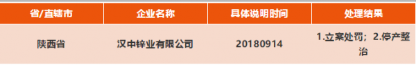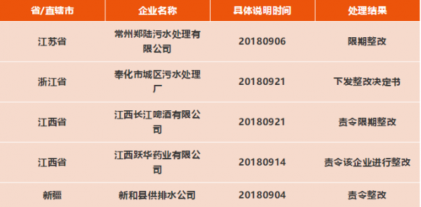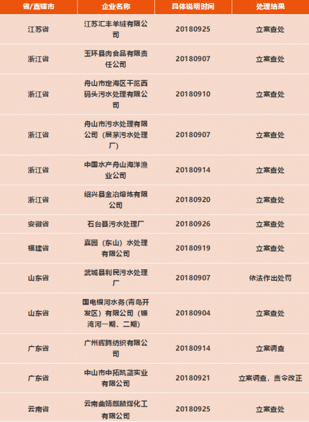 9月收到19家企业被严肃处理,其中1家企业停产整治,13家企业立案查处,5家企业责令整改。