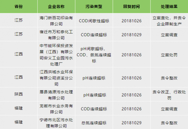 在过去的一周,贝博艾弗森官网持续对全国重控污染源在线监测数据进行监督,并且对连续或间断性超标3天的企业进行举报,经汇总上一周共举报57家企业,在持续跟进下,上一周收到各地环保局对贝博艾弗森官网的积极回复,其中7家企业被严肃处理,具体情况如下所示: