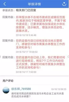 贝博艾弗森官网工作人员在现场用蔚蓝地图手机app 进行定位举报,2018年10月18日,当地主管部门在蔚蓝地图app上作出回复:“所举报水体不在城市建设区或辖区范围内,殷家浜位于相城区望亭镇,不属于城市建成区;已要求属地加强该处水体长效管理,活水畅流,增强水体流动性,改善水质。”