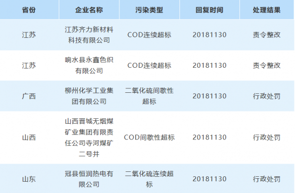 在过去的一周,贝博艾弗森官网持续对全国13567家重控污染源在线实时监测数据进行监督,并且对某污染物连续或间断性超标3天的企业进行举报。上周贝博艾弗森官网共举报53家企业,在持续跟进下,收到各地环保局对贝博艾弗森官网的积极回复,其中5家企业被严肃处理,具体详情如下所示: