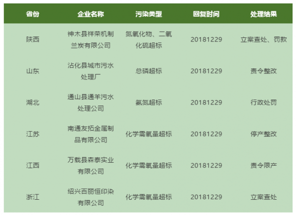 在过去的一周,贝博艾弗森官网持续对全国13567家重控污染源在线实时监测数据进行监督,并且对某污染物连续或间断性超标3天的企业进行举报。上周贝博艾弗森官网共举报59家企业,在持续跟进下,收到各地环保局对贝博艾弗森官网的积极回复,其中6家企业被严肃处理,具体详情如下所示: