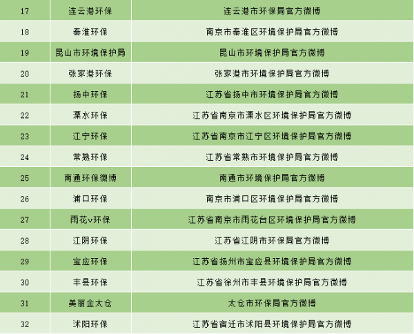 2、2018年江苏省环保政务微博总排名