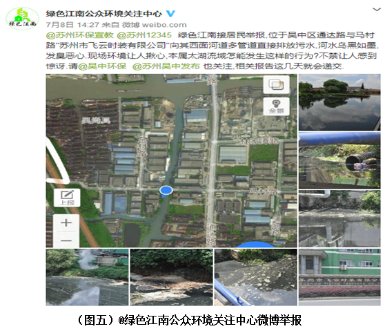 贝博艾弗森官网现场发现该河道的黑臭问题后,立即通过三个渠道进行举报:①在河道十米范围内通过微信“城市水环境公众参与”举报黑臭水体;②@贝博艾弗森官网公众环境关注中心在现场通过微博举报,向当地主管部门反映了该河道黑臭情况。③贝博艾弗森官网当日向吴中区环保局递交了该河道的调研报告;