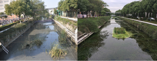 图3:左图为治理前右图为河道正在进行生态修复治理