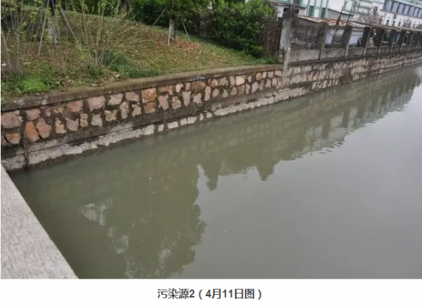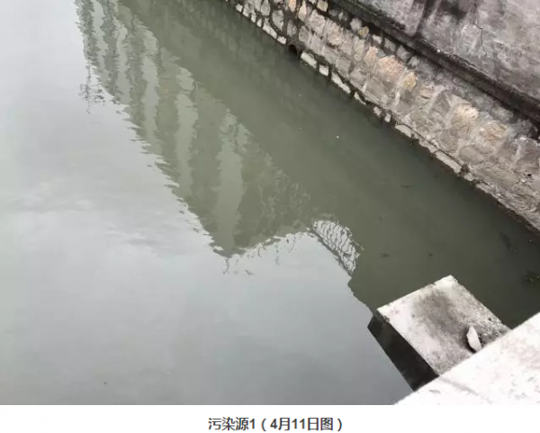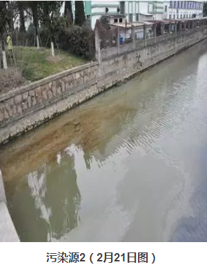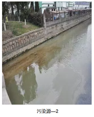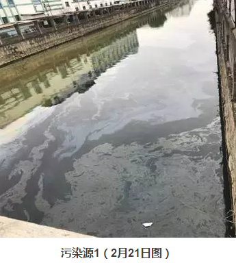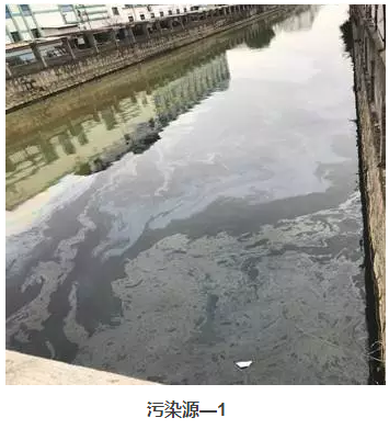 污染源—1处的河道,河水黑如墨汁,河面浮着油污,并且被污染的河段很长,从桥拱下一直向南蔓延数千米。