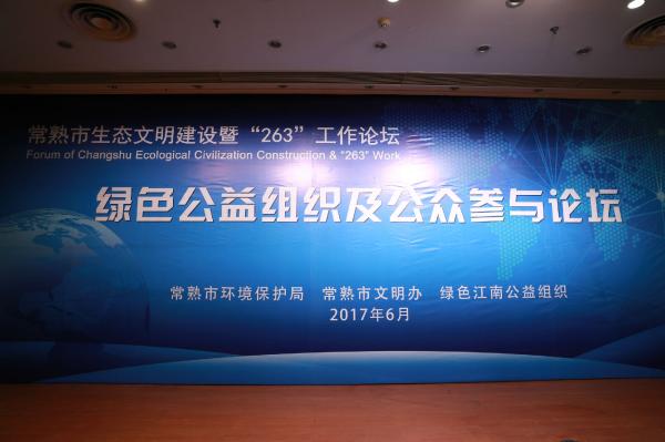 2017年6月17日下午,由常熟市生态文明建设领导小组主办、常熟市环保局,常熟市文明办,贝博艾弗森官网公众环境关注中心承办的常熟市生态文明建设暨”263”工作论坛绿色公益组织环保分论坛,在常熟国际饭店隆重举行!来自环保系统,环保公益组织,民间社团,环保志愿者,企业,居民等各界人士参与了该论坛。